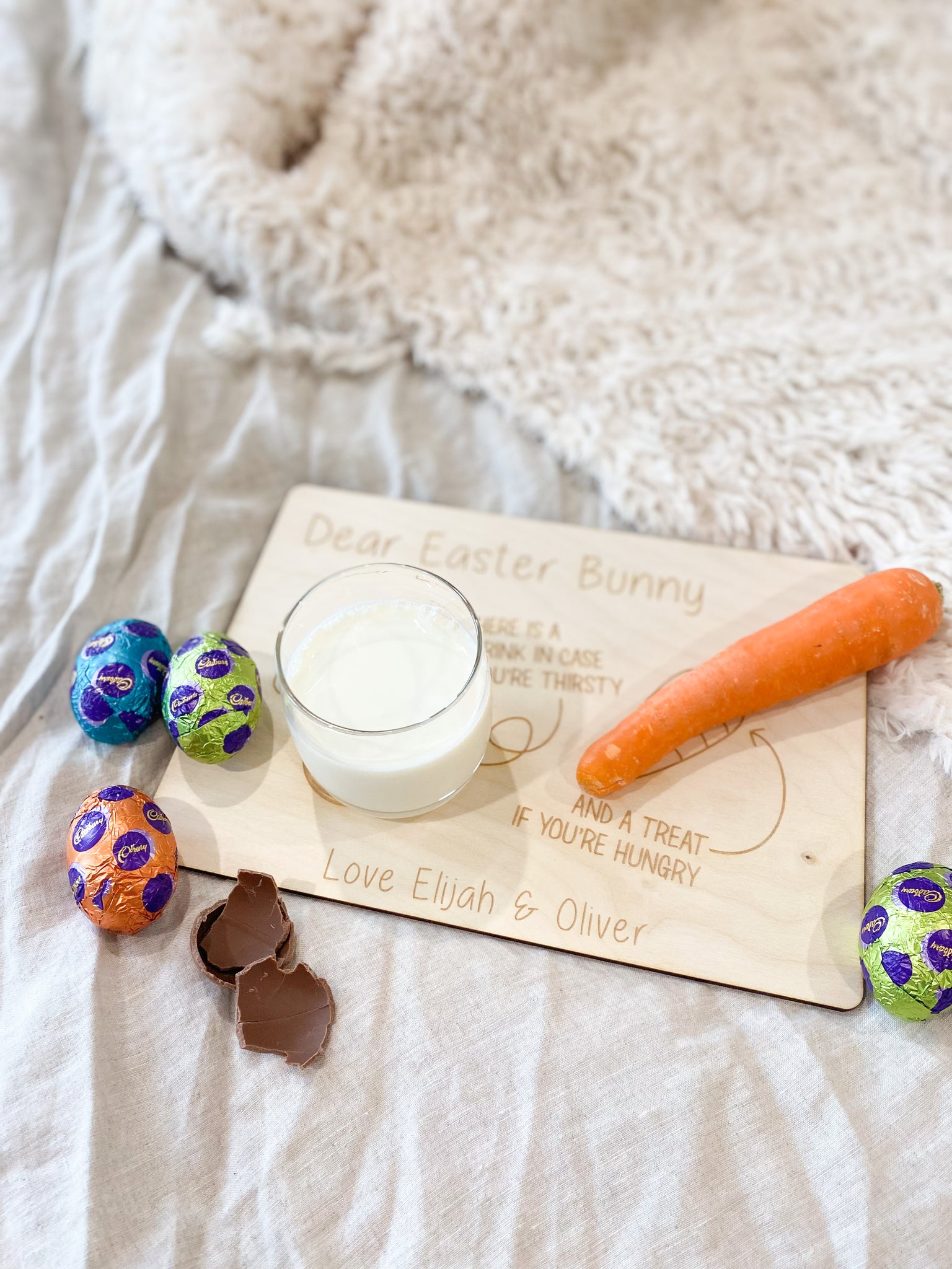 These beautiful personalised trays are the perfect way to get the kids excited and involved the night before the Easter bunny arrives.