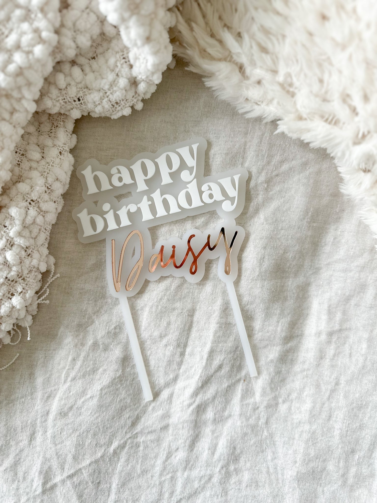 This double layer topper is the perfect choice to use year and year again. A beautiful personalised touch to your cake!