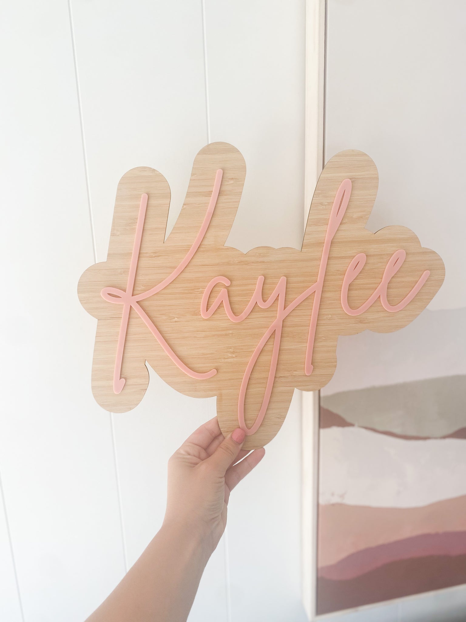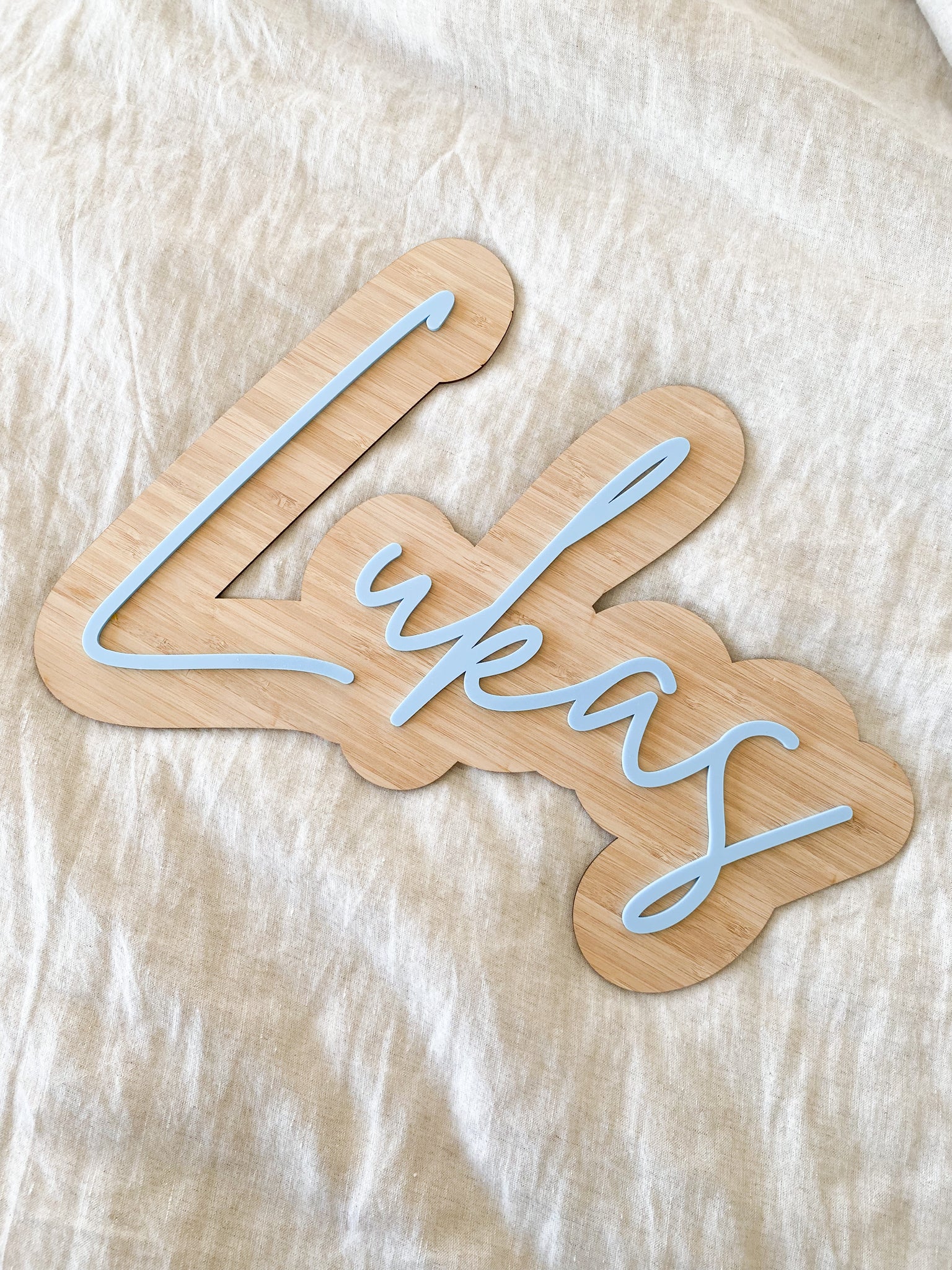 Now these stunning name plaques are a personal fav, made from our quality 2.5 mm bamboo and our 3mm acrylic stuck on top is the finishing touch to your little ones room or door, or wherever your heart desires.